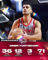 过去两个赛季,尤特赛文效力希腊的帕纳辛纳科斯,上周刚刚签约G联盟的火箭毒蛇,上周五刚刚砍下36分12篮板。
