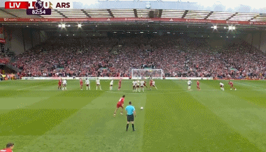 第82分钟,索博斯洛伊主罚前场中路任意球左脚劲射破门,利物浦终于打破僵局。